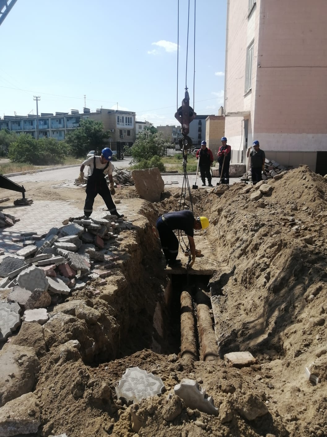 В 14 микрорайоне около 23 дома вдоль дороги в водяном колодце питьевой воды проводятся ремонтные работы на трубопроводе питьевой воды.